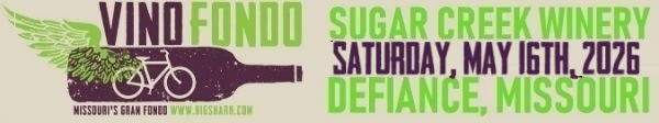 About The Vino Fondo- Big Shark Bicycle Company and Sugar Creek Winery bring the European cycling tradition of the Gran Fondo cycling experience to Missouri’s hilliest wine country. A traditional pairing of challenging riding and a tour of some of Missouri’s best vineyards. Experience the same roads and towns visited by the internationally acclaimed Tour of Missouri Professional Cycling Race as well as some of the toughest Gravel Roads around. RETURNING FOR 2026: Two gravel/road “Groad” Options- The Mondo and Midi Grindo Fondos.